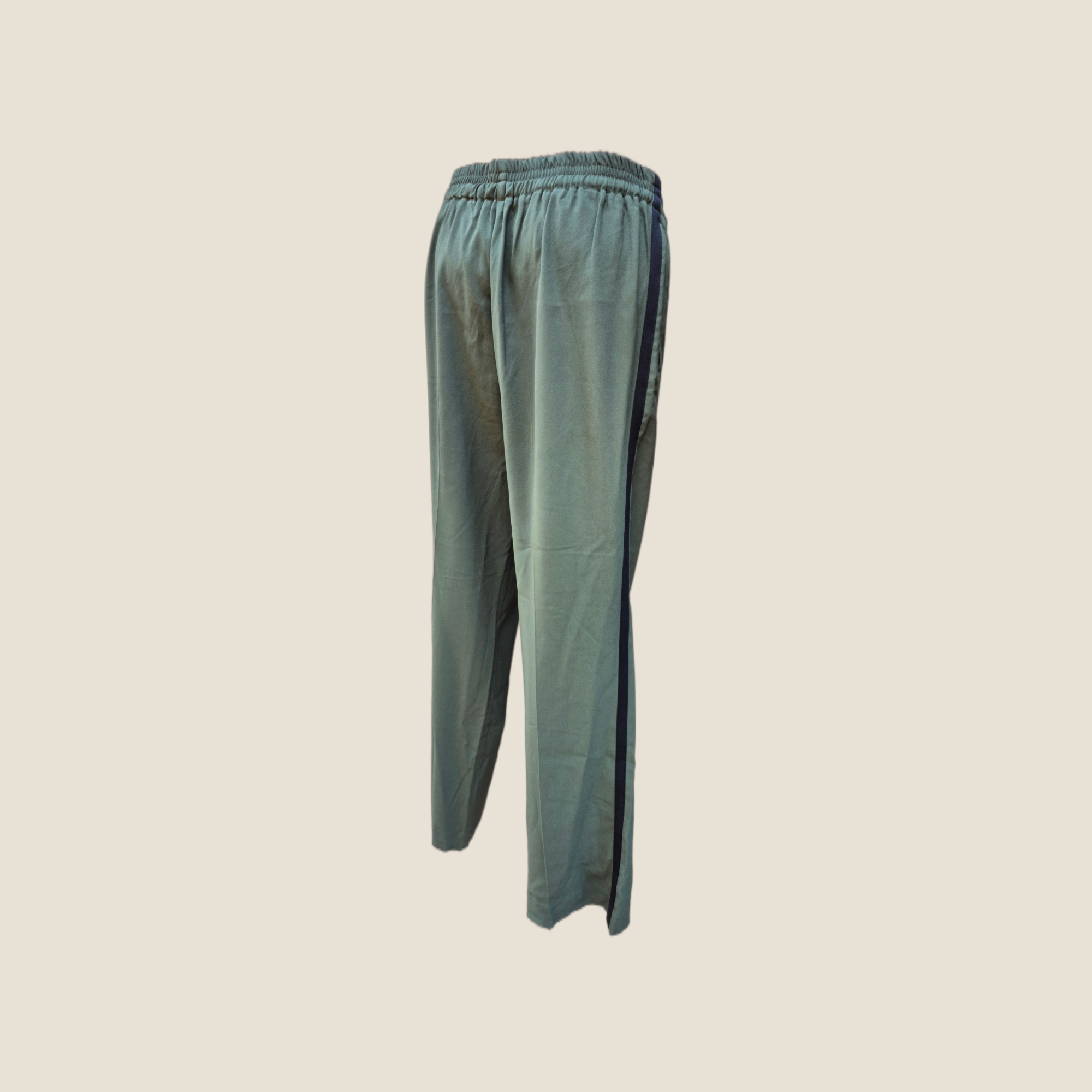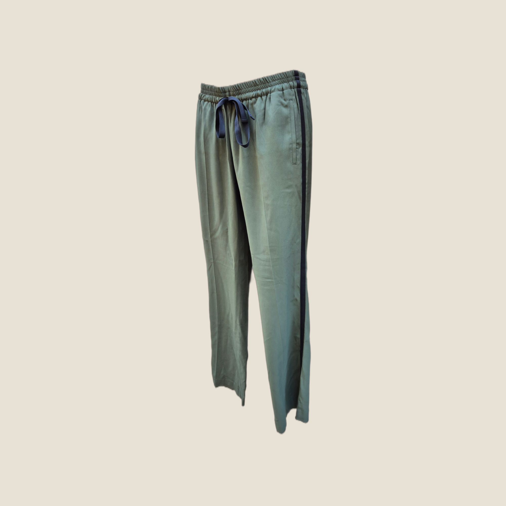 Pantalón Zadig & Voltaire de silueta relajada con inspiración sport chic. Confeccionado en tejido fluido y ligero, presenta cintura elástica con cordón ajustable y pernera recta de caída suave. Incorpora banda lateral en contraste que estiliza la línea y aporta un toque moderno. Ideal para looks cómodos con punto sofisticado, perfecto para combinar con blazers, camisetas o knitwear.